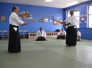 Saturday started the actual seminar with movements and techniques flowing from the original Aikijujitsu to Aikido. We trained in the classic aikido weapons of bokken, tanto and jo developing genuine insights concentrating on timing, correct distance,extension of ki and balance.